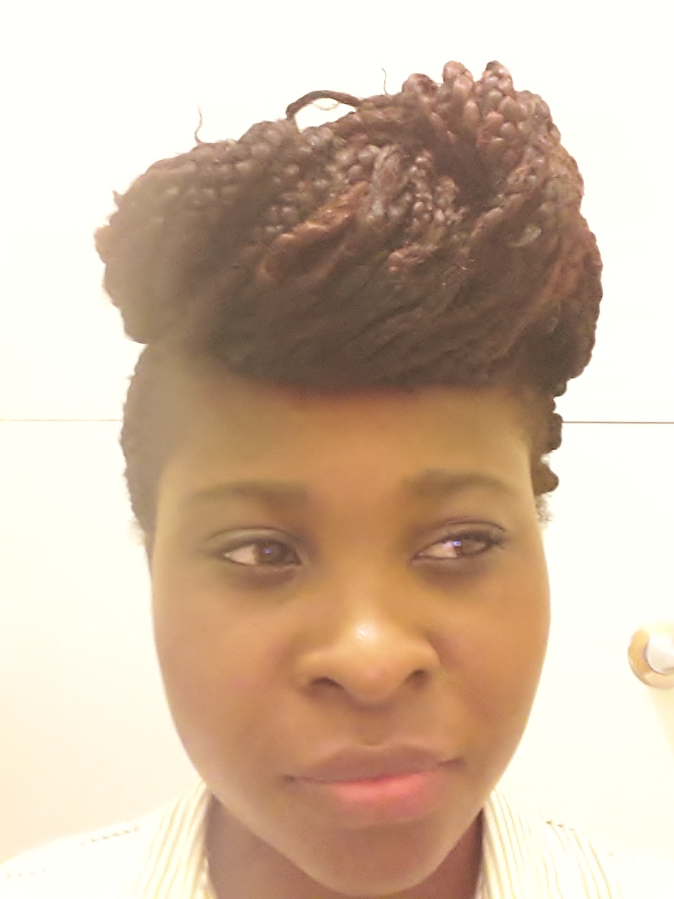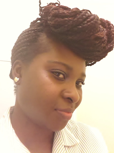 I LUV THESE BRAIDS I’VE GOT ON. IT TOOK ME A WHILE TO DECIDE TO BRAID MY HAIR.I JUST FIND IT VERY DIFFICULT TO SIT FOR LONG TO HAVE IT BRAIDED.I THOUGHT I SHOULD HAVE ONE SIDE BRAIDED TO SAVE TIME BUT THE STYLE CAME OUT NICE.GOT ME A LOT OF COMPLIMENTS. BUT SINCE ITS DONE I THOUGHT THAT I SHOULD STYLE IT TO GET MY COMFORT’S WORTH OUT OF IT.LOL.