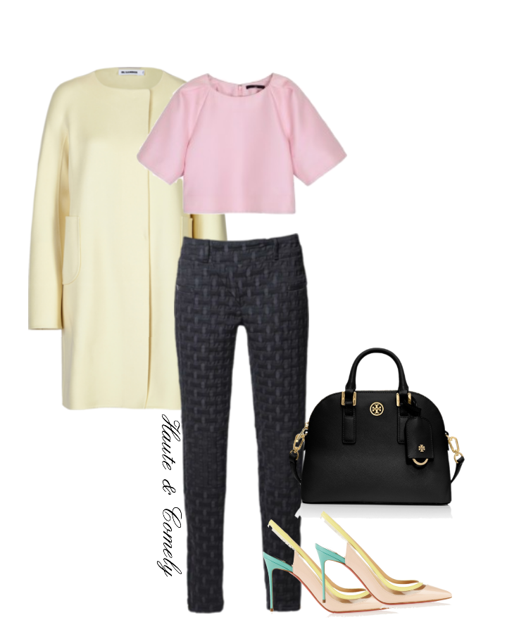 Tibi top Jill Sanders coat Tory Burch bag Djeegn trousers