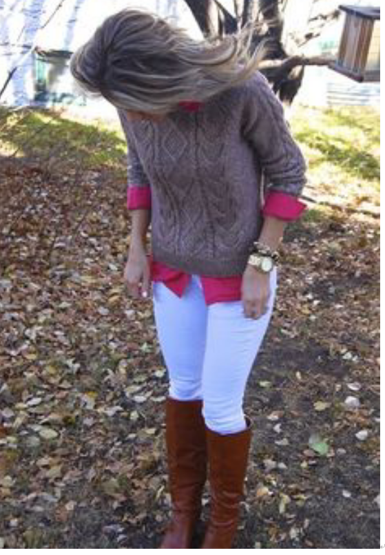 When you love those white tops you’ve bought in summers, and you know their fabric is not that light to be easily worn in winter, and then you just need a blazer or coat in the colors of fall to go with it. Well, we don’t want you to be dressed in all white from head to toe; find a bottom in other color or just go with your denim skinnies. Since you’ll be wearing this in fall you can also layer your outfit with a fall perfect scarf and long boots to complete your look. If you’re still in the transition