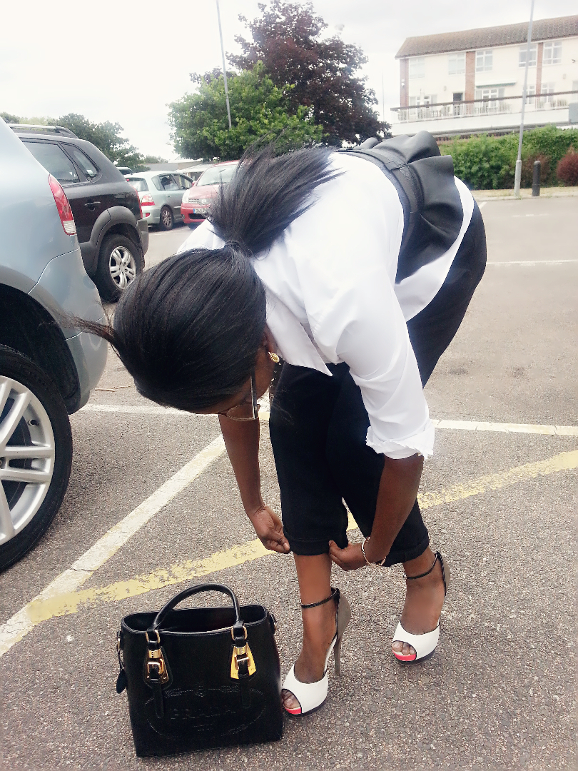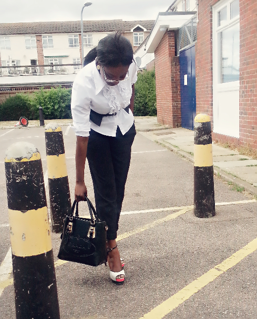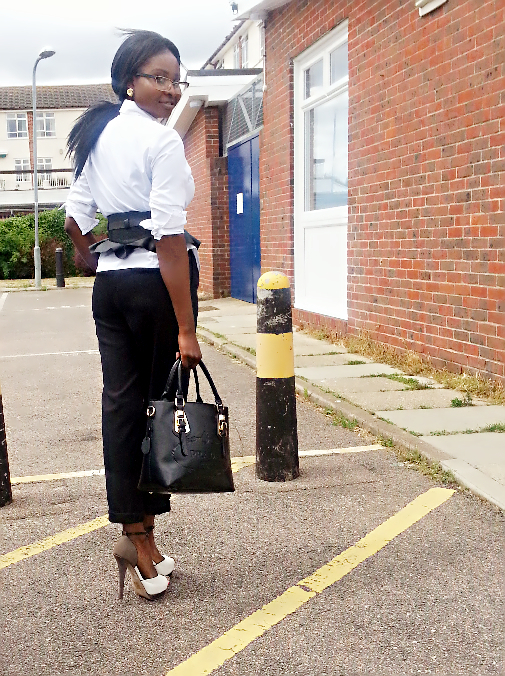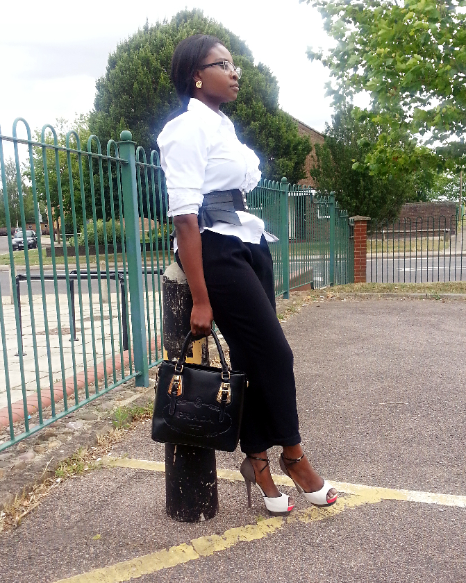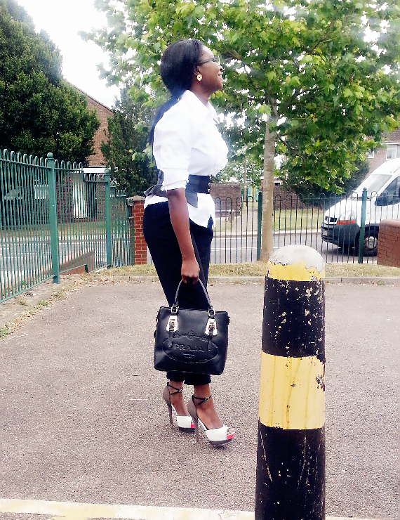 – Thrifted Richards High waisted trousers – Topshop colour block sandals