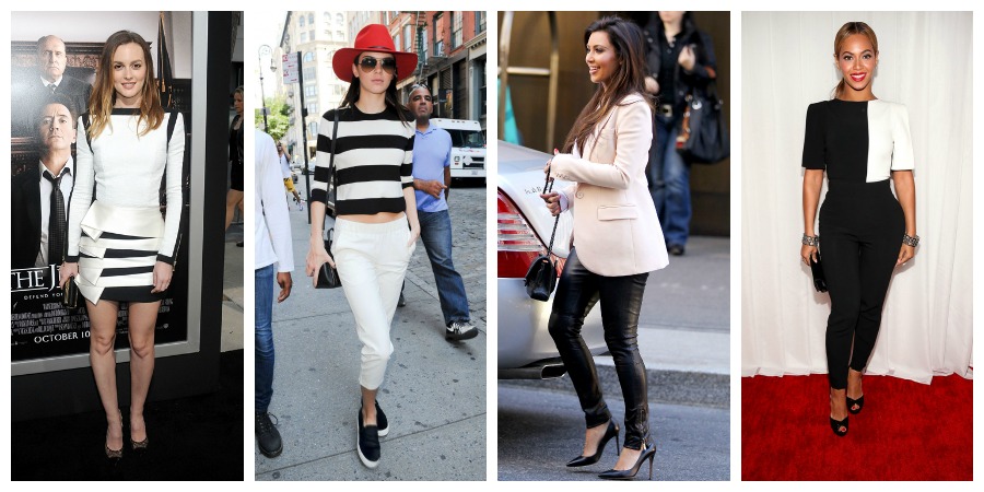 Leighton Meester chose the long-sleeved Balmain mini dress with the absolutely gorgeous black skirt with white panels. She added black lace pumps and the black clutch. Sheer perfection. Kendall Jenner opted for the bold black and white look with the white trouser suit and the black and white striped crop top. Another Kardashian sister, Kim combined high-waisted black pants, the white top and the white blazer. Beyonce rocked the 55th Annual Grammy Awards with a fabulous black and white structured jumpsuit by Osman Yousefzada. One of her best look ever!