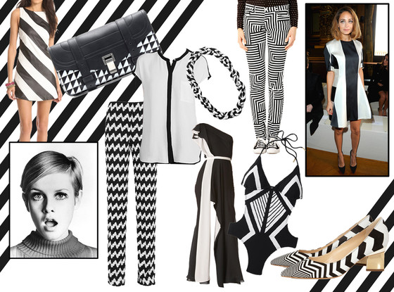 Black and white is an excellent choice for casual wear, which may come as a surprise. Black and white striped pants, a white blouse and red peep-toe heels are a huge hit this season. Black and white striped pants are worth having as you can always break the monochromatic look with yellow or pink blazers. A black and white striped peplum top and a black pencil skirt with black platform heels, little red belt and red handbag is something you should definitely try out. Take a fashion risk with a structured black and white jumpsuit and combine it with matching striped high heels. Learn from the best. Let beautiful Twiggy and Nicole Richie be your fashion role model and choose a graphic print black and white trench coat and white stilettos. Transform your with a white oversized blazer. A black and white wide striped shift dress is the great combination with a leather bag, a black leather jacket and black peep-toe booties.