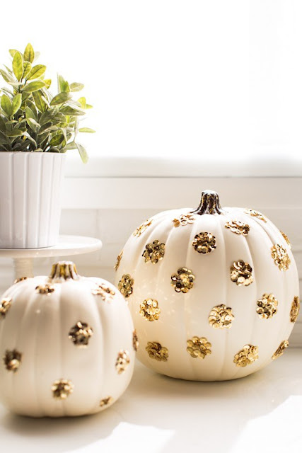 Why don’t you try out this sequin pumpkin Diy by Sugar and Cloth