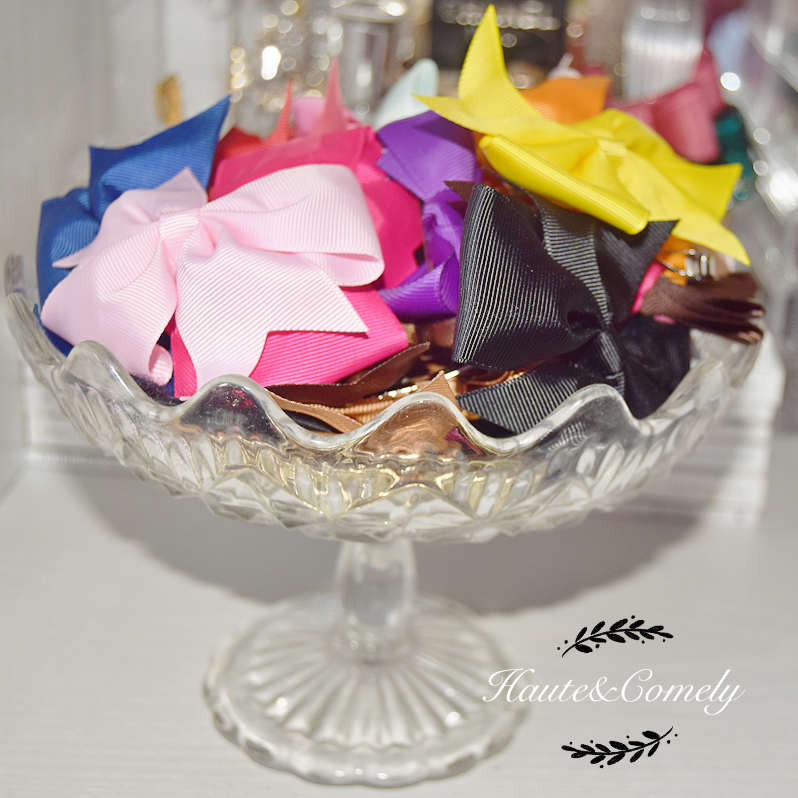 I store my daughter’s dressy hair accessories in my closet because they seem to get missing when I keep them in her room. I use this cupcake holder to store her bows.