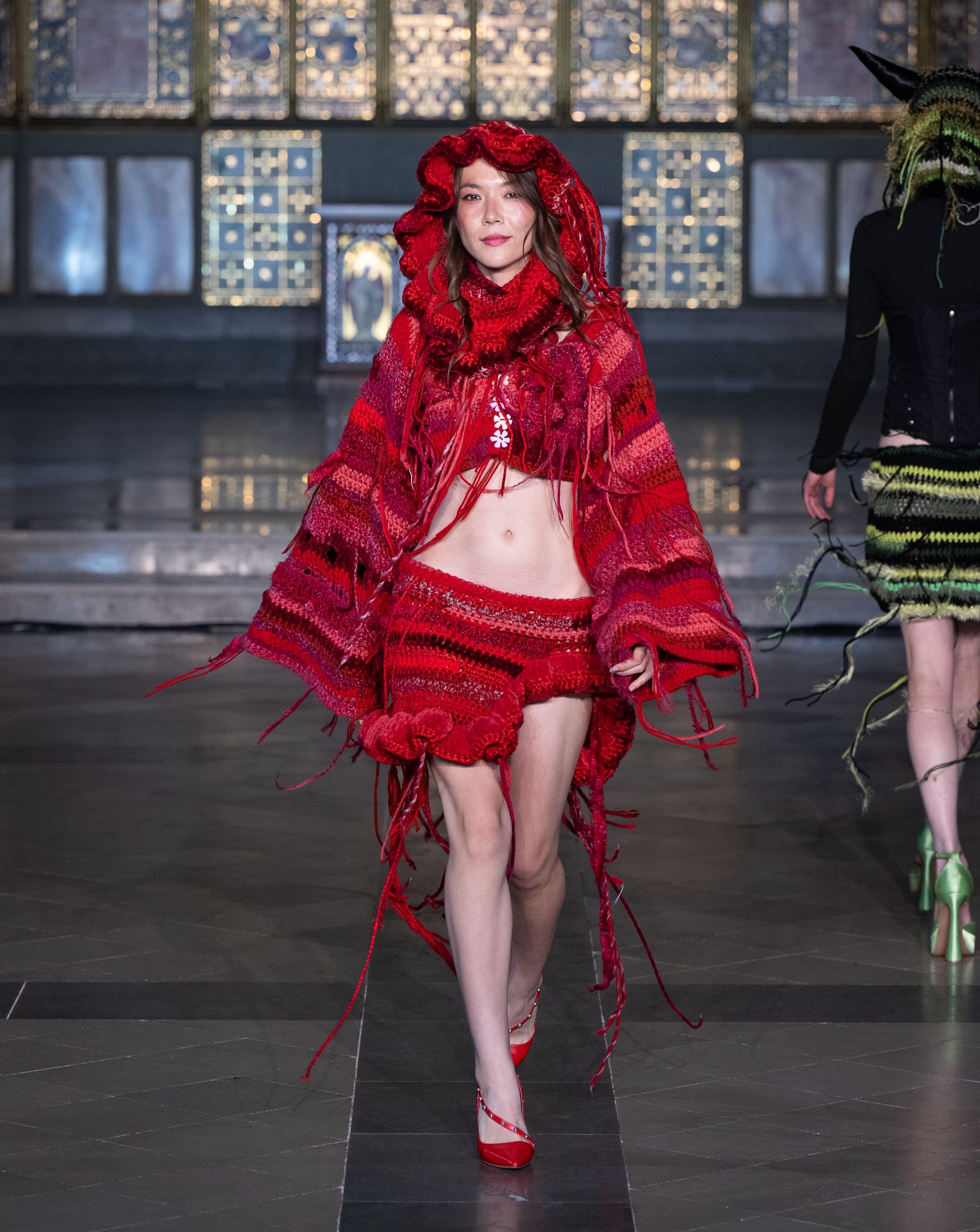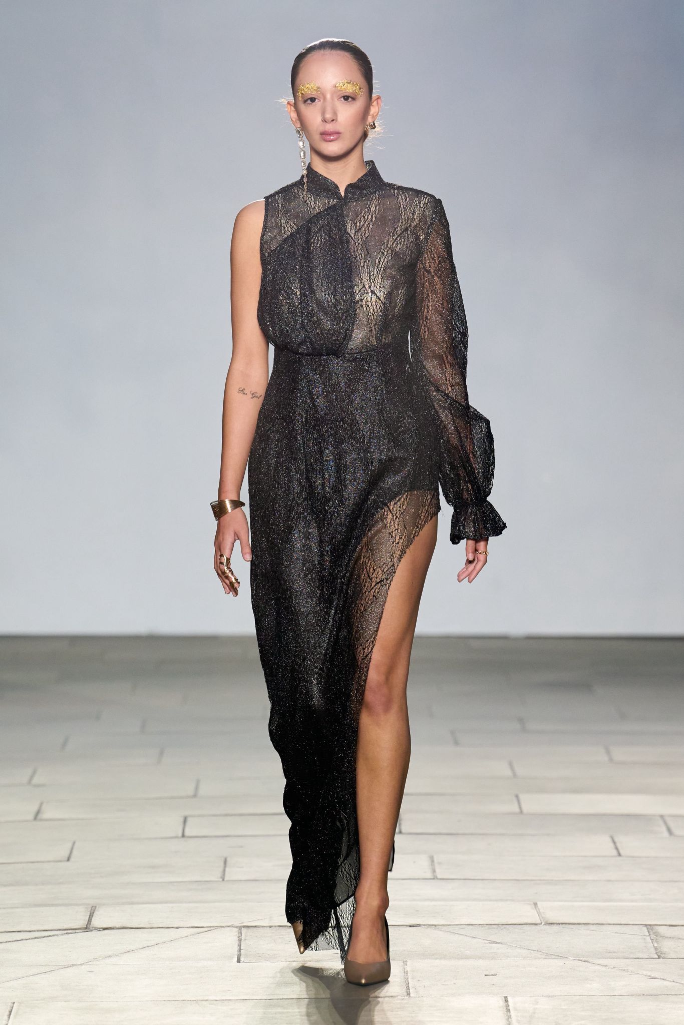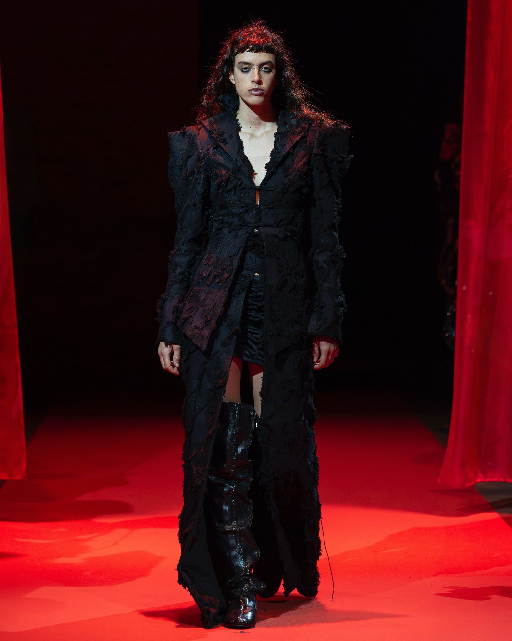 The Jenn Lee SS26 runway show took placee at Village Underground, London. This anniversary collection channels the literary elegance of Dream of the Red Chamber, translating its timeless sensuality into a bold new chapter of aesthetic evolution. Moving beyond raw-edged deconstruction, the brand embraces exaggerated tailoring and a gothic refinement, while retaining its signature provocation through the avant-garde use of acupuncture needles as fashion statements crafted by Salient Class. Infused with JENN LEE’s fearless sensibility, the collection harmonises the philosophical grace of East Asian tradition with the rebellious spirit of London’s subversive punk heritage, forging a vision that is at once poetic, defiant, and profoundly contemporary.
