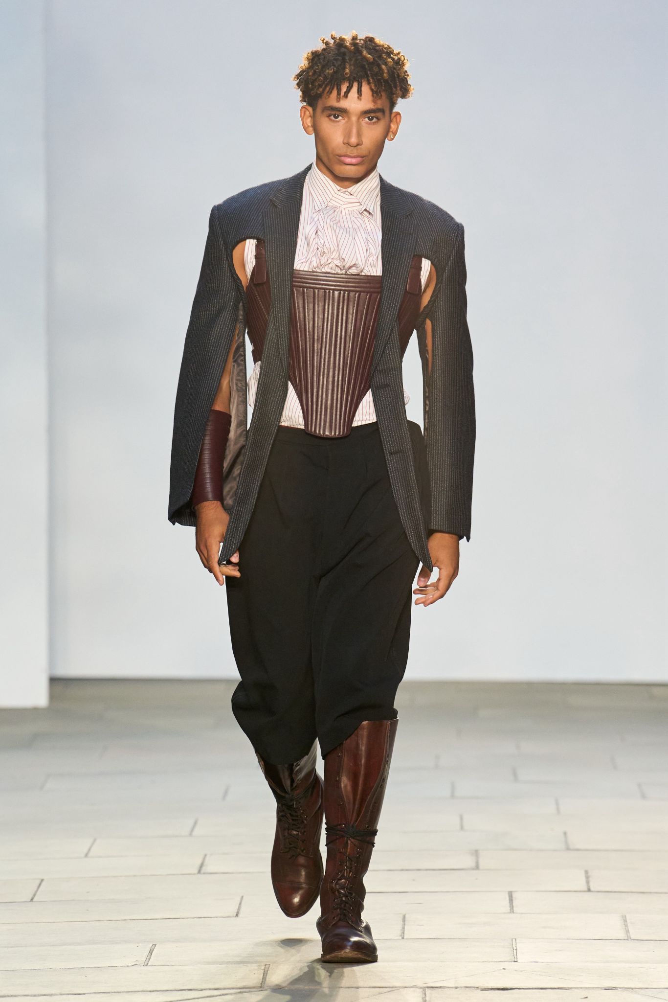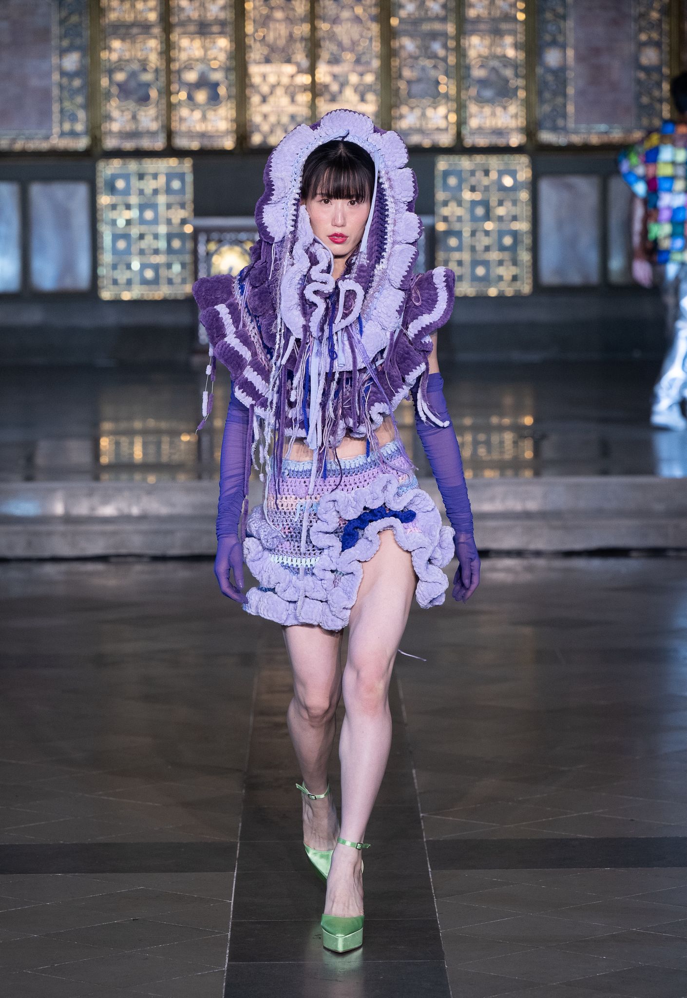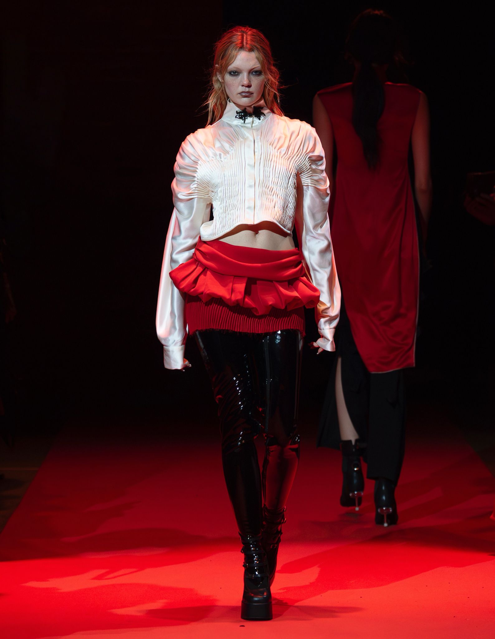 The Jenn Lee SS26 runway show took placee at Village Underground, London. This anniversary collection channels the literary elegance of Dream of the Red Chamber, translating its timeless sensuality into a bold new chapter of aesthetic evolution. Moving beyond raw-edged deconstruction, the brand embraces exaggerated tailoring and a gothic refinement, while retaining its signature provocation through the avant-garde use of acupuncture needles as fashion statements crafted by Salient Class. Infused with JENN LEE’s fearless sensibility, the collection harmonises the philosophical grace of East Asian tradition with the rebellious spirit of London’s subversive punk heritage, forging a vision that is at once poetic, defiant, and profoundly contemporary.