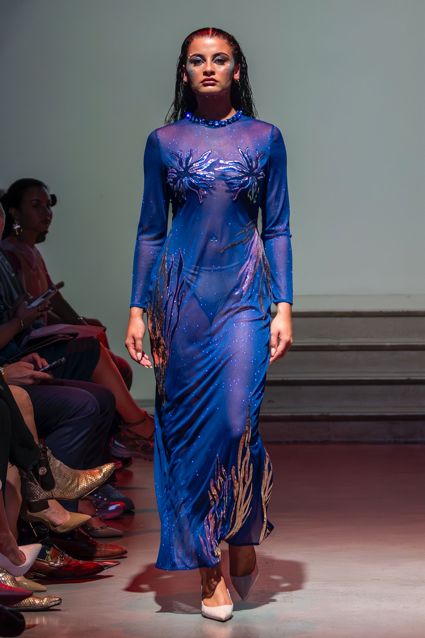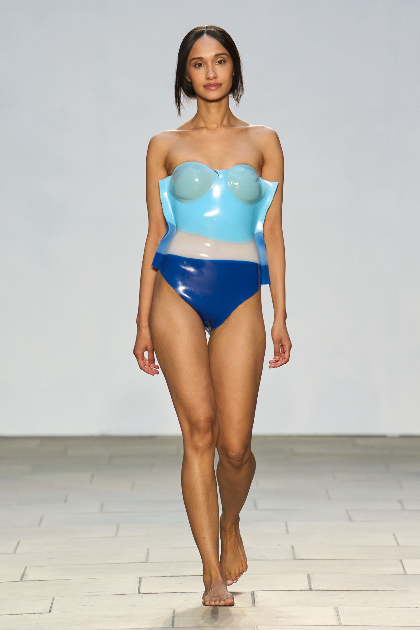 Viktoria Marchev advanced her experimental work with silicone rubber into a visionary collection of immersive, underwater-inspired designs, fluid in both form and imagination.