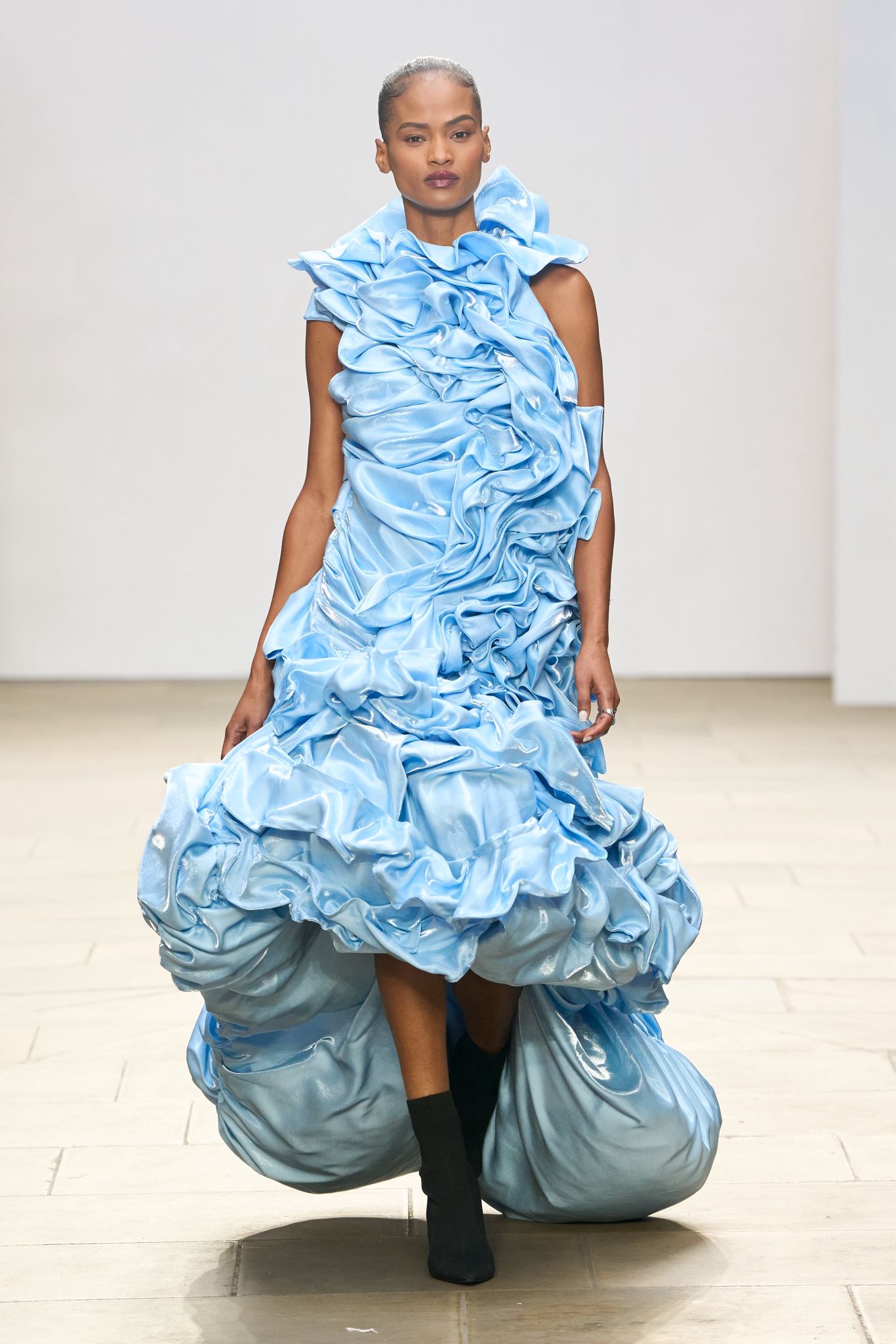 ChenChen Studio unveiled architectural, sculptural silhouettes that transformed clothing into living installations, blurring the line between wearable garment and kinetic artwork.