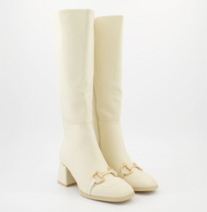 • White Knee-High Boots with Gold Buckle